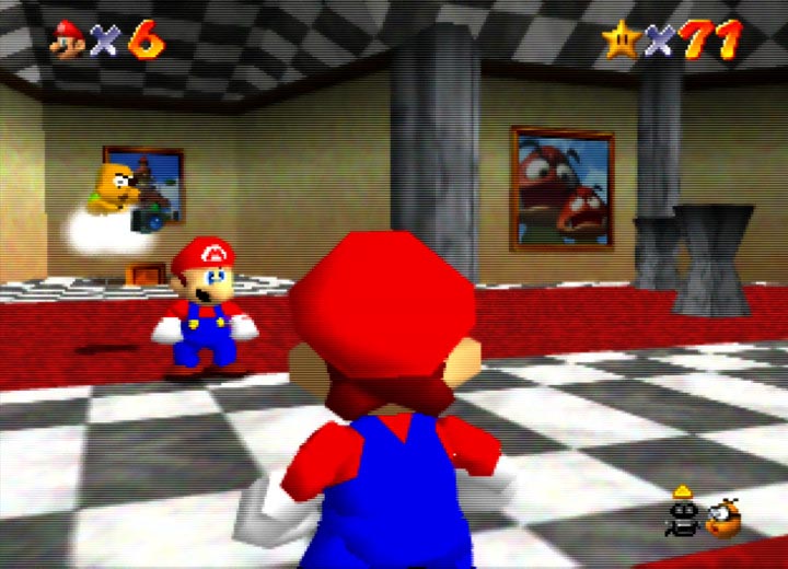 The camera was critical too - if the camera was fixed, it would reduce the incentive to explore. If the camera were always stuck right behind Mario, it would have majorly limited what you could do. Treating the camera as a separate entity introduced players to a new way of interacting with games.